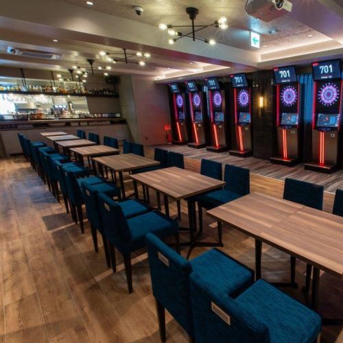 다트대의 측에는 2분~이용하실 수 있는 테이블석을 준비하고 있습니다!다트의 사이의 쉬는 휴식이나 멋진 공간에서 술을 즐기고 싶을 때 등에 이용하실 수 있습니다♪푸드 메뉴나 음료 메뉴도 풍부하게 준비하고 있으므로 꼭 들러 주세요.